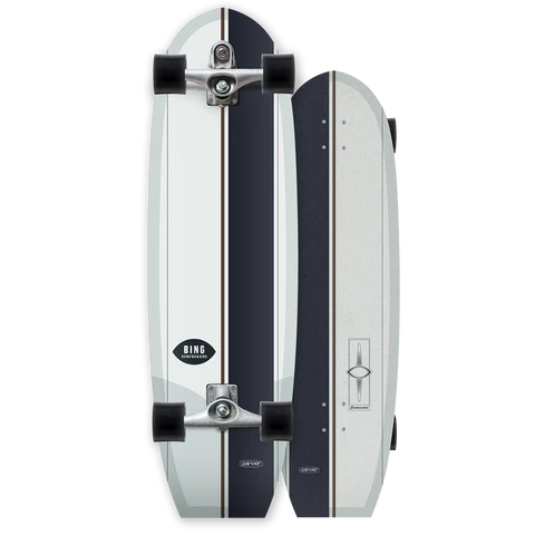 A true classic surfskate, The 37” Bing Continental is the longest board in Carver's lineup, with a super wide template for easy and stable cruising, cross stepping, and nose riding. Experience the feeling of longboard surfing on pavement! This timeless design is a must have for any Carver quiver. Inspired by the glide and control of its surfboard counterpart, the Continental’s 21.25" wheelbase is long enough to flow smoothly for cross stepping, but with Carver’s renowned CX and C7 truck systems, remain very maneuverable. Complete with top graphics and Sugarcoat grip for that ‘waxed longboard’ look, this exclusive collaboration lets you embrace the freedom of the streets while capturing the spirit of the ocean.